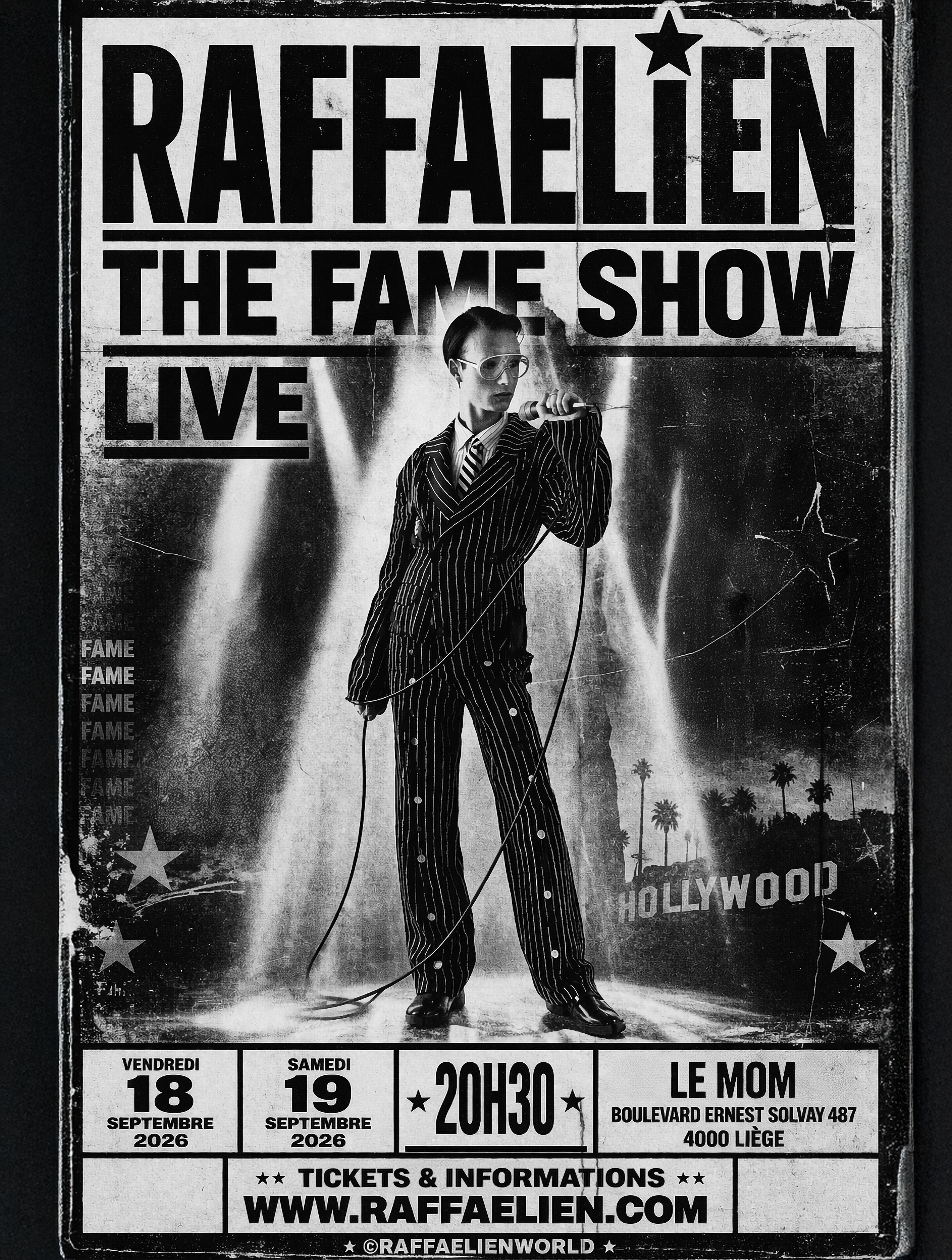 “The Fame Show (Live)” brings the world of Rebellious Fame to life on stage, through a fully immersive experience shaped by sound, image, and presence. Accompanied by a live band, Raffaelien transforms each track into a moment of tension, elegance, and release.